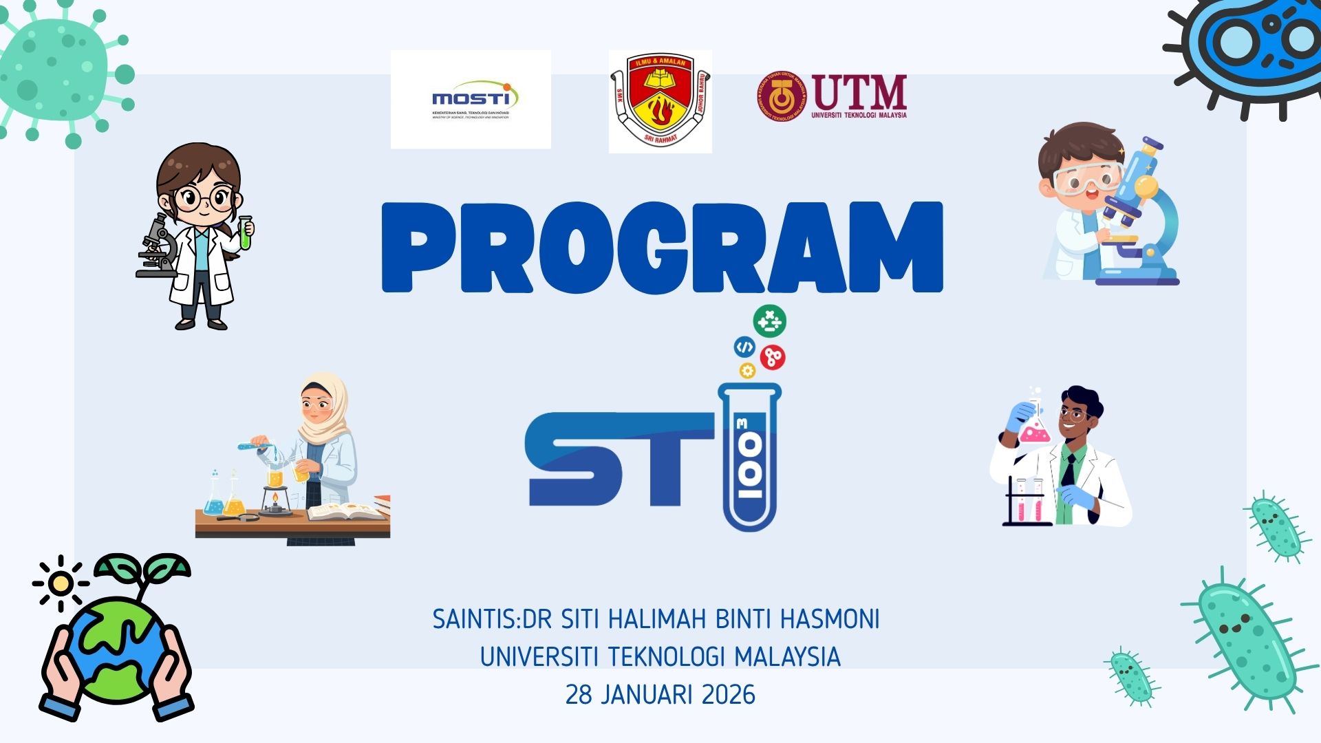 A group of 64 Form 1 students from SMK Sri Rahmat, Johor Bahru, recently participated in an interactive science outreach programme led by Dr Siti Halimah Hasmoni from the Department of Biosciences, Faculty of Science, Universiti Teknologi Malaysia (UTM). The programme was made possible through funding from the Ministry of Science, Technology and Innovation (MOSTI) under the Science, Technology and Innovation (STI) 100³ initiative, which aims to cultivate interest in STEM among school students across Malaysia.