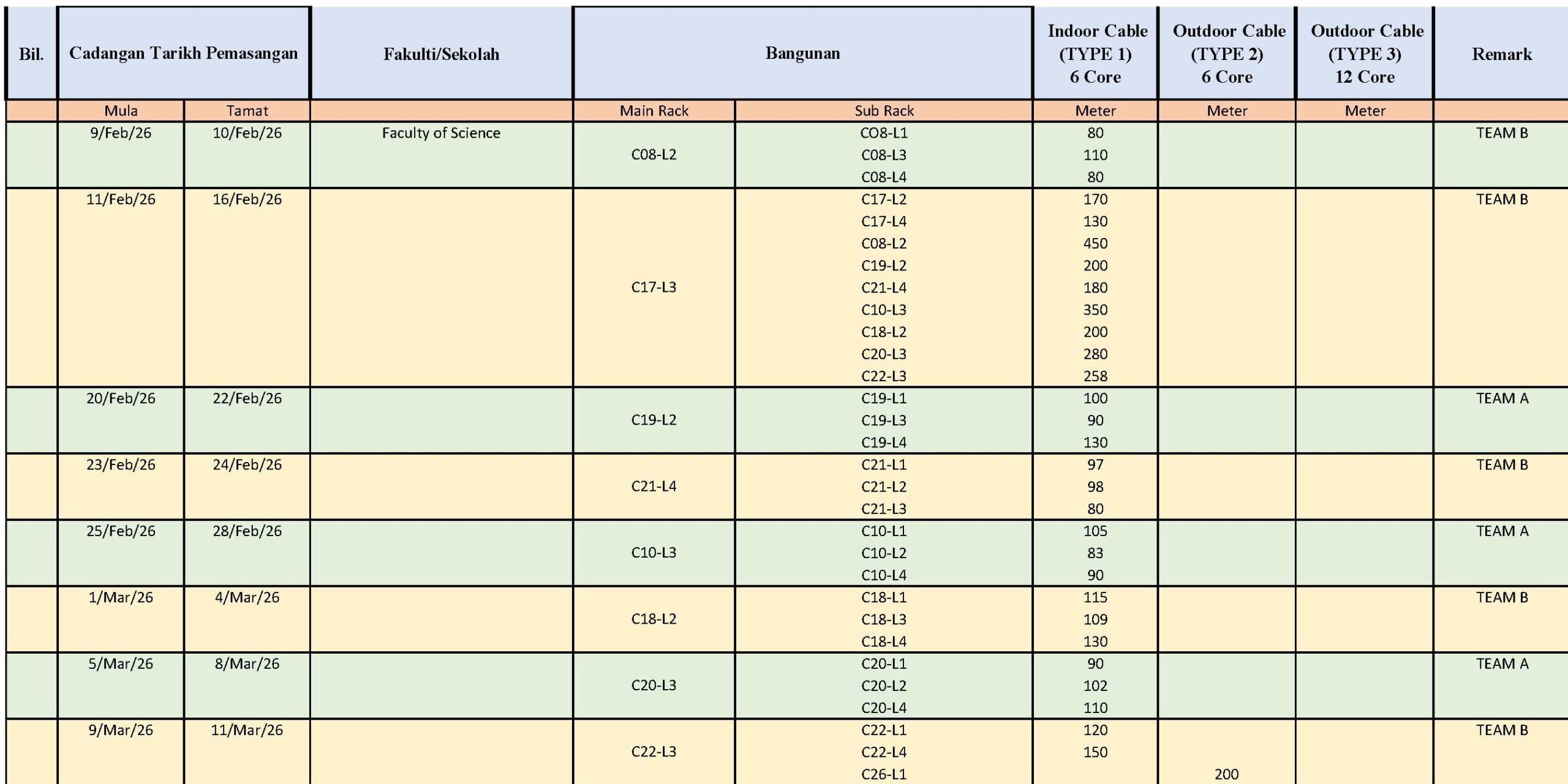 PEMASANGAN TALIAN FIBER OPTIK FAKULTI SAINS 2026
