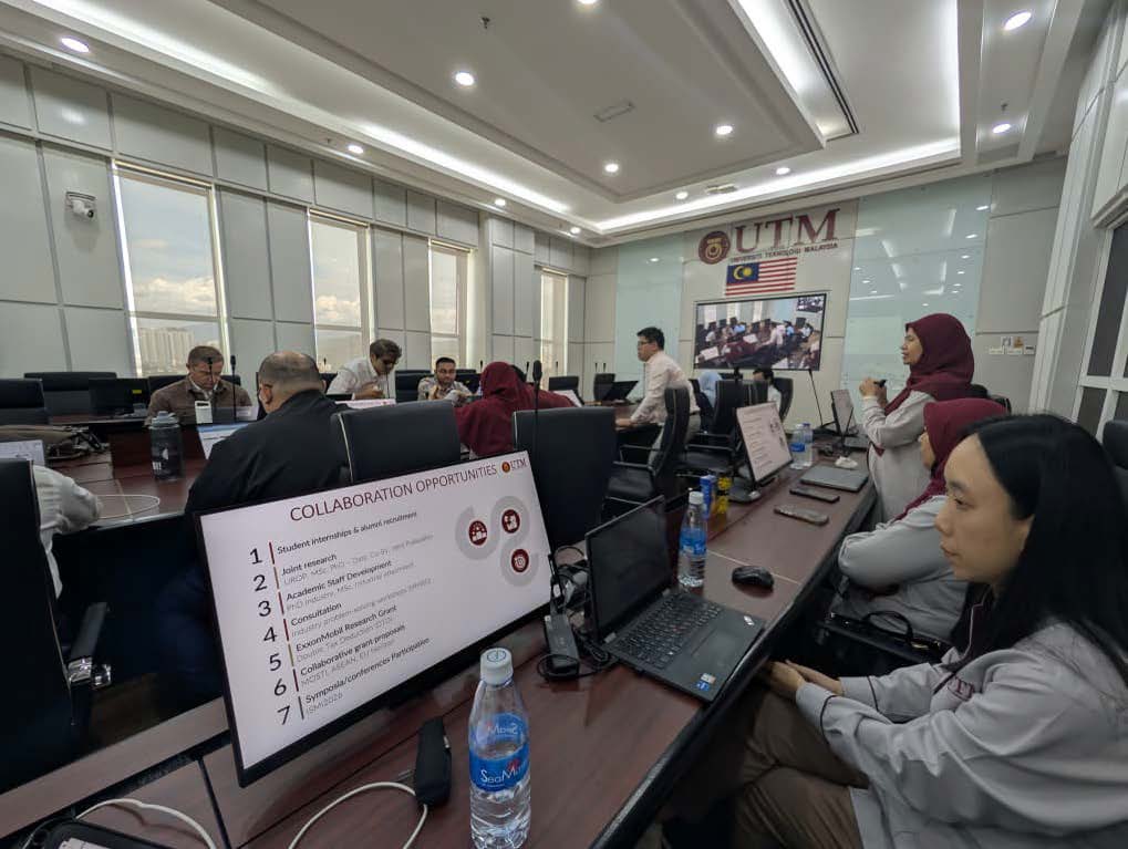 9 October 2025, Kuala Lumpur – The Mathematical Optimization Research Group (RGMO) from the Faculty of Science, Universiti Teknologi Malaysia (UTM), welcomed delegates from ExxonMobil’s Modeling Optimization and Data Science (MODS) division in a strategic courtesy visit held at Menara Razak, UTM Kuala Lumpur. The engagement marked a significant step in forging stronger ties between academia and industry in the fields of mathematical optimization, modeling, and data science.