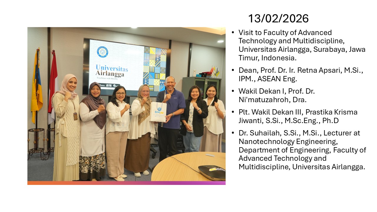 The program concluded on 13 February 2026 with a visit to the Faculty of Advanced Technology and Multidiscipline, Universitas Airlangga (UNAIR), Surabaya. The delegation met with: